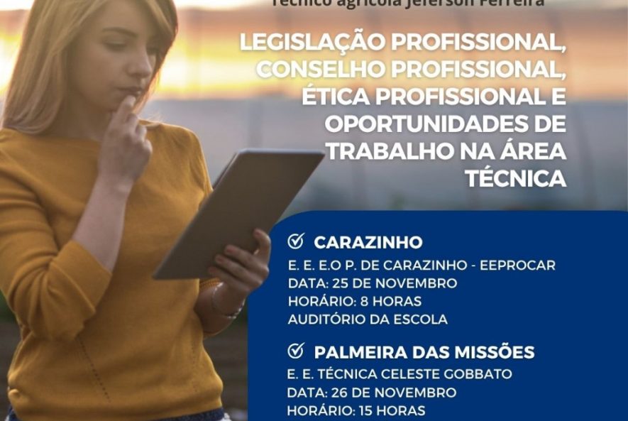 O SINTARGS estará presente nas escolas agrícolas promovendo uma palestra essencial sobre Legislação Profissional, Conselho Profissional, Ética e as oportunidades de trabalho na área técnica.
